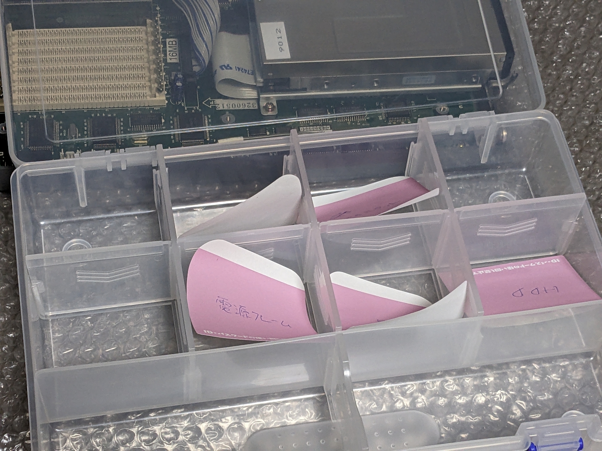 前項でAIのておくれロボの書いてくれている通り、作業前準備として「分解したときに取り外したねじを整理するためのパーツケースと付箋を用意しておく」とよいです。