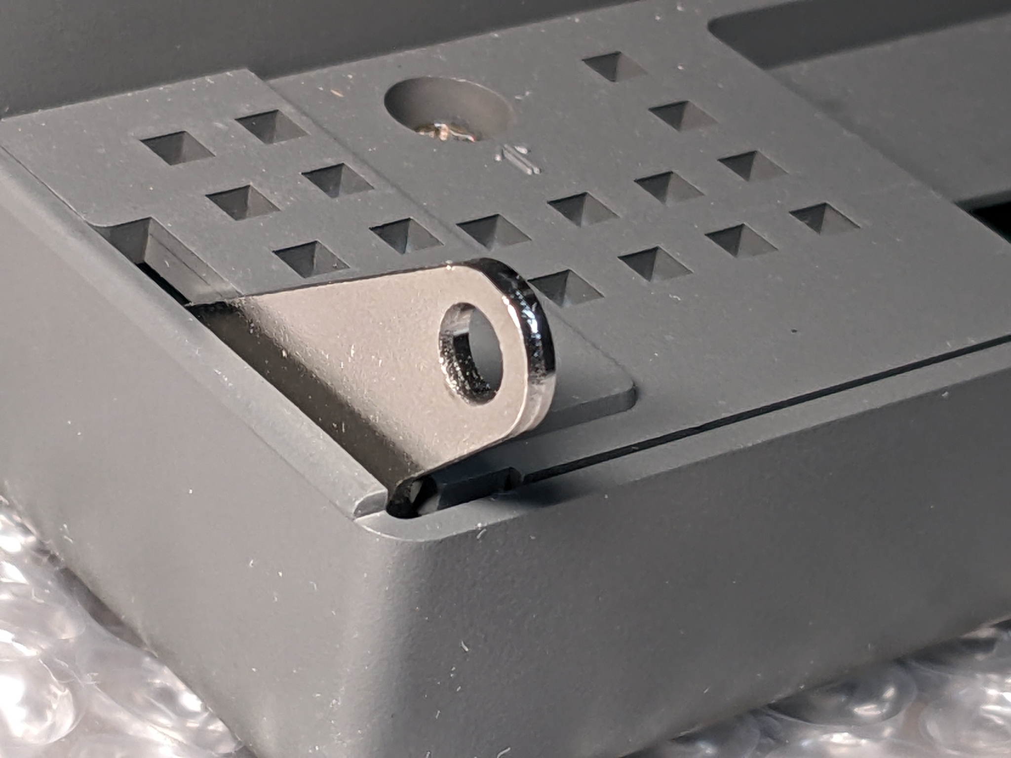 本体側の蝶番軸受け部分はこんな感じ。ここはさすがにそこそこ強度ある感じです。