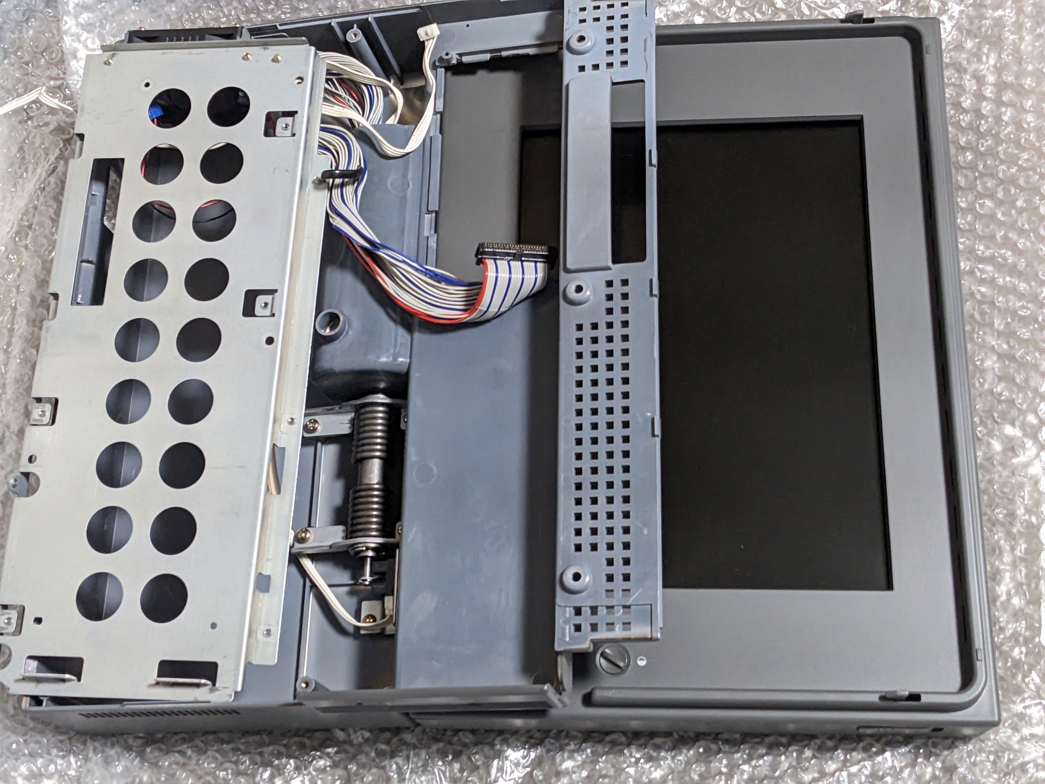 電源取り付けフレームが外せたら、左側に仮置きしていた上側液晶とカバーと一体になるようにまとめます。