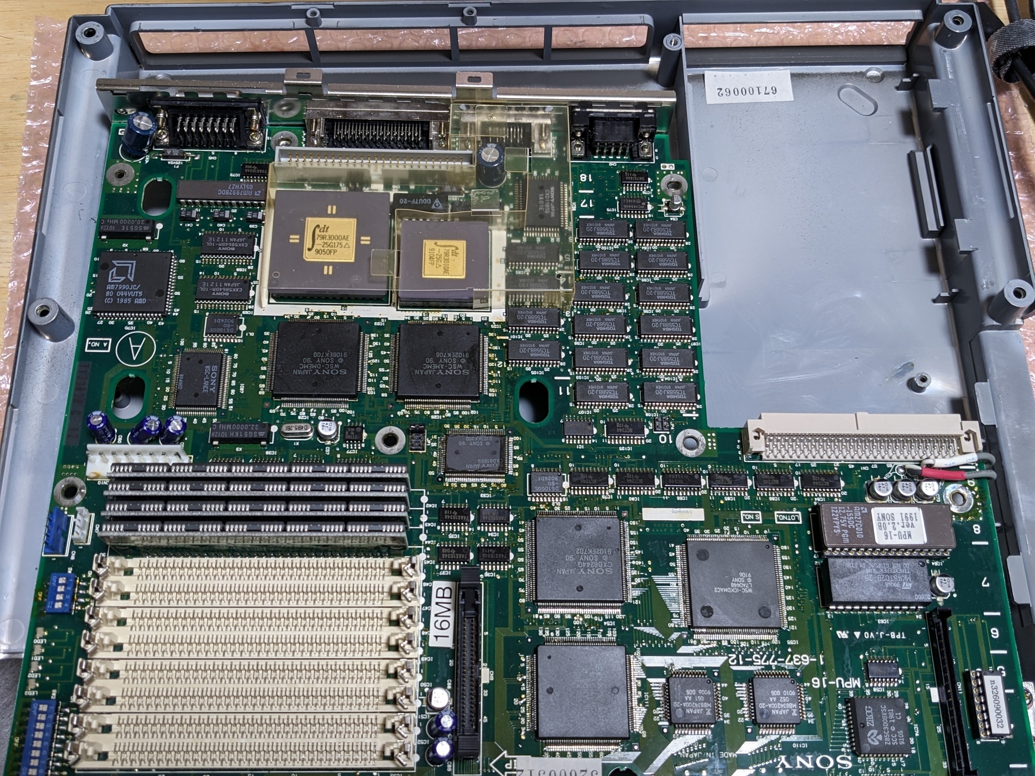 NWS-3260の場合、電源までばらした状態であっても、電源とキーボードさえ接続すれば、シリアルコンソールを使ってブートPROMが起動するところまでは動作確認が可能でした。